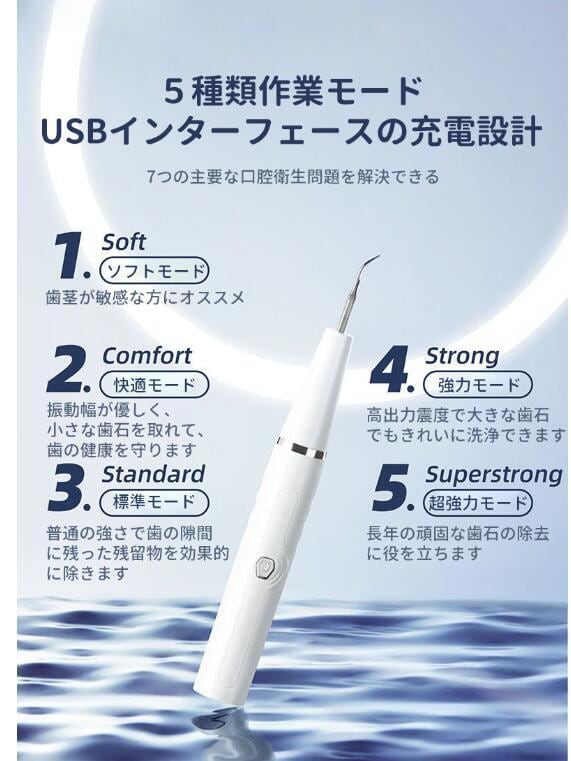 口腔洗浄器 4種類ヘッド LEDライト付き 歯石取り 歯石 超音波 電動歯ブラシ 口腔洗浄機 ヤニ取り