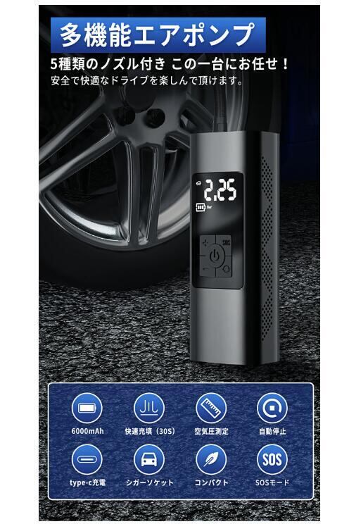 電動空気入れ 空気入れ 電動 自転車 エアポンプ 充電式 バイク サイクル 仏式 英式 米式 車 ロードバイク